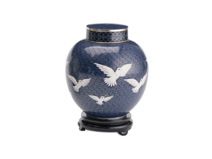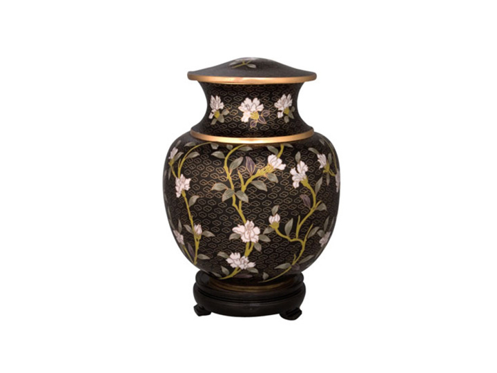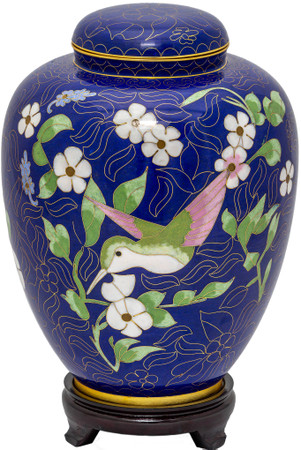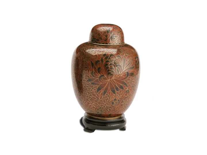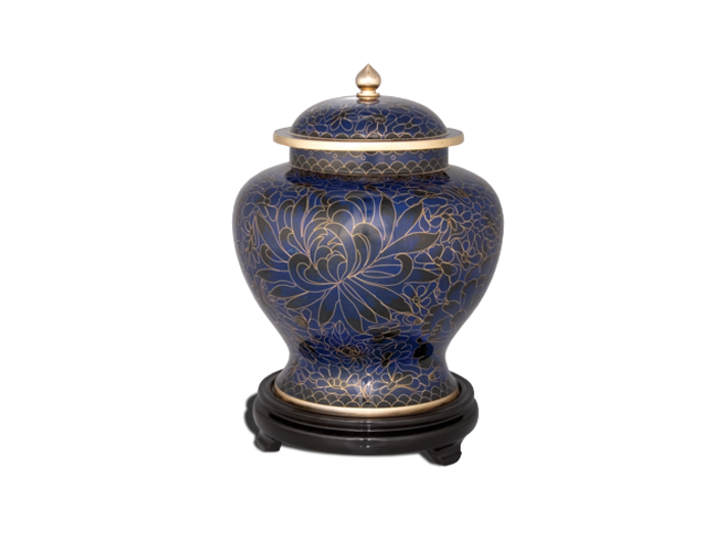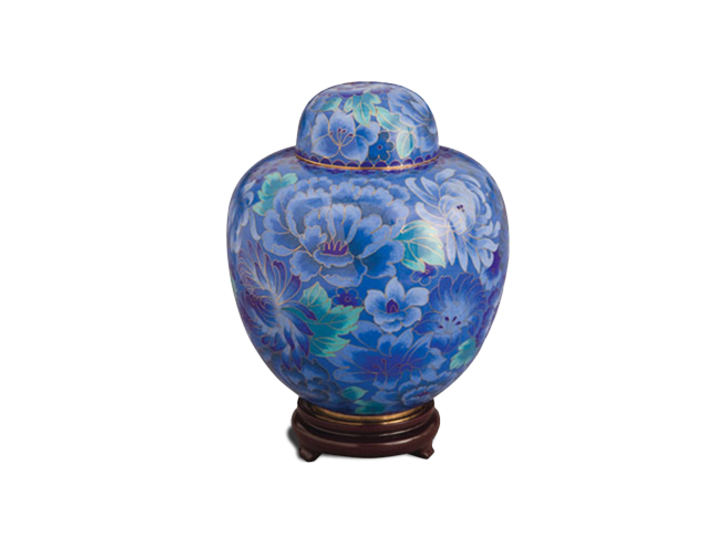 Discover the timeless elegance of our Cloisonné Urns, crafted through an ancient process that begins with a sturdy brass base. Each urn is meticulously decorated with vibrant enamel pieces, artfully separated by strips of flattened brass. This intricate design is then kiln-fired, resulting in an urn of exceptional beauty and durability. The Cloisonné Urns stand as a testament to skilled craftsmanship and enduring quality, offering a dignified and elegant resting place for your loved one.