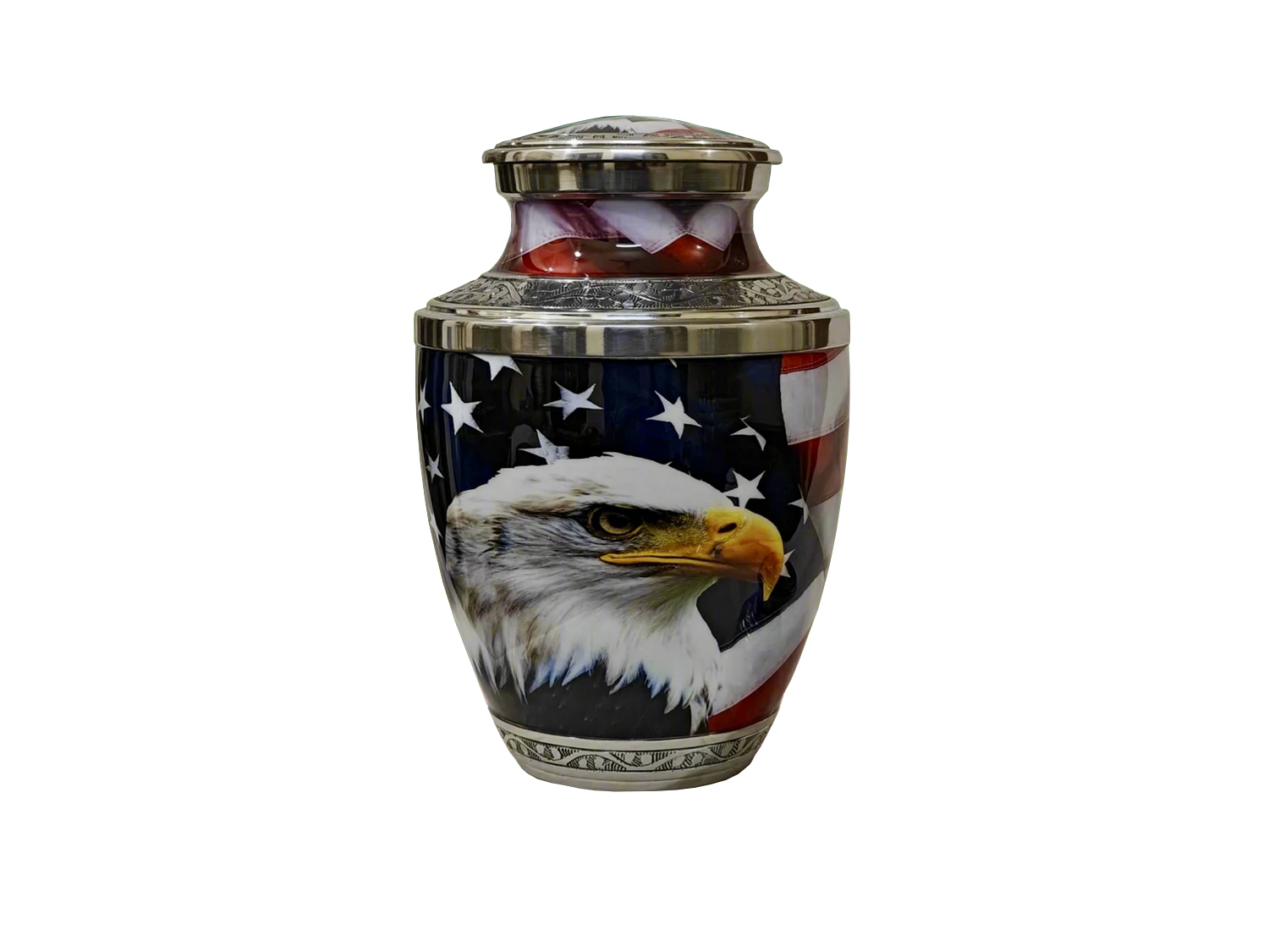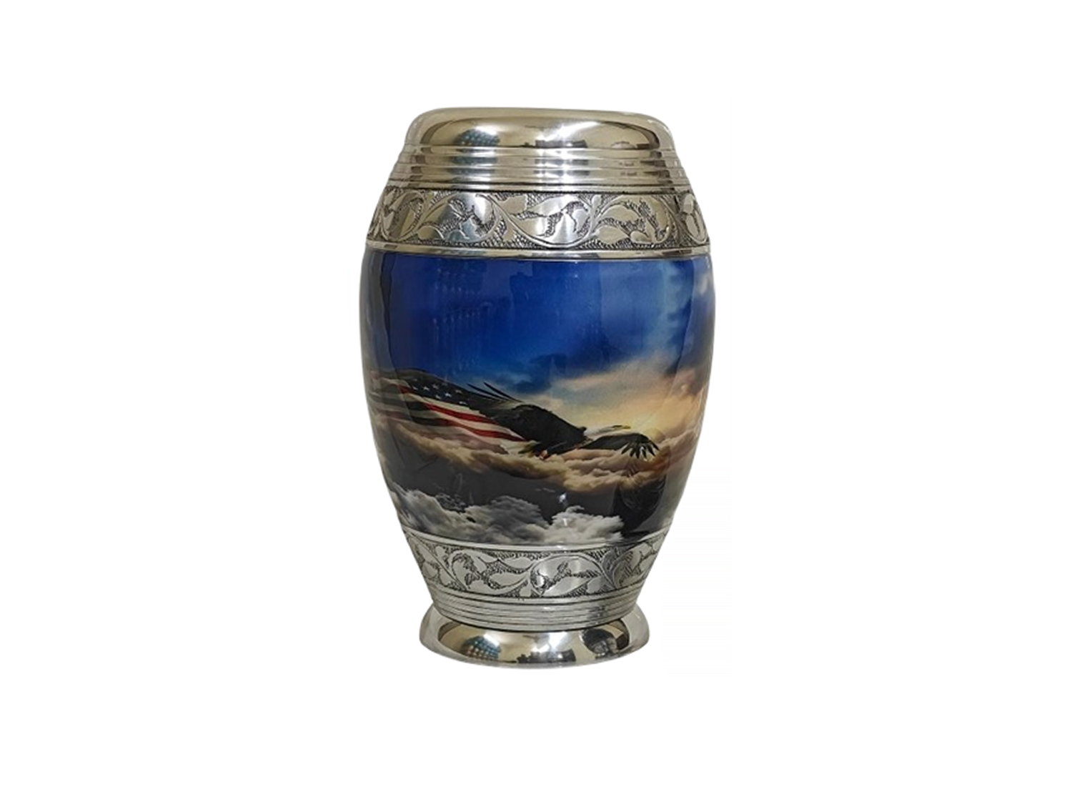 Patriot Urn: Celebrate a life of patriotic service with the Patriot Urn, featuring the American flag. This urn honors unwavering dedication to country and freedom, making it ideal for military veterans and patriots alike.