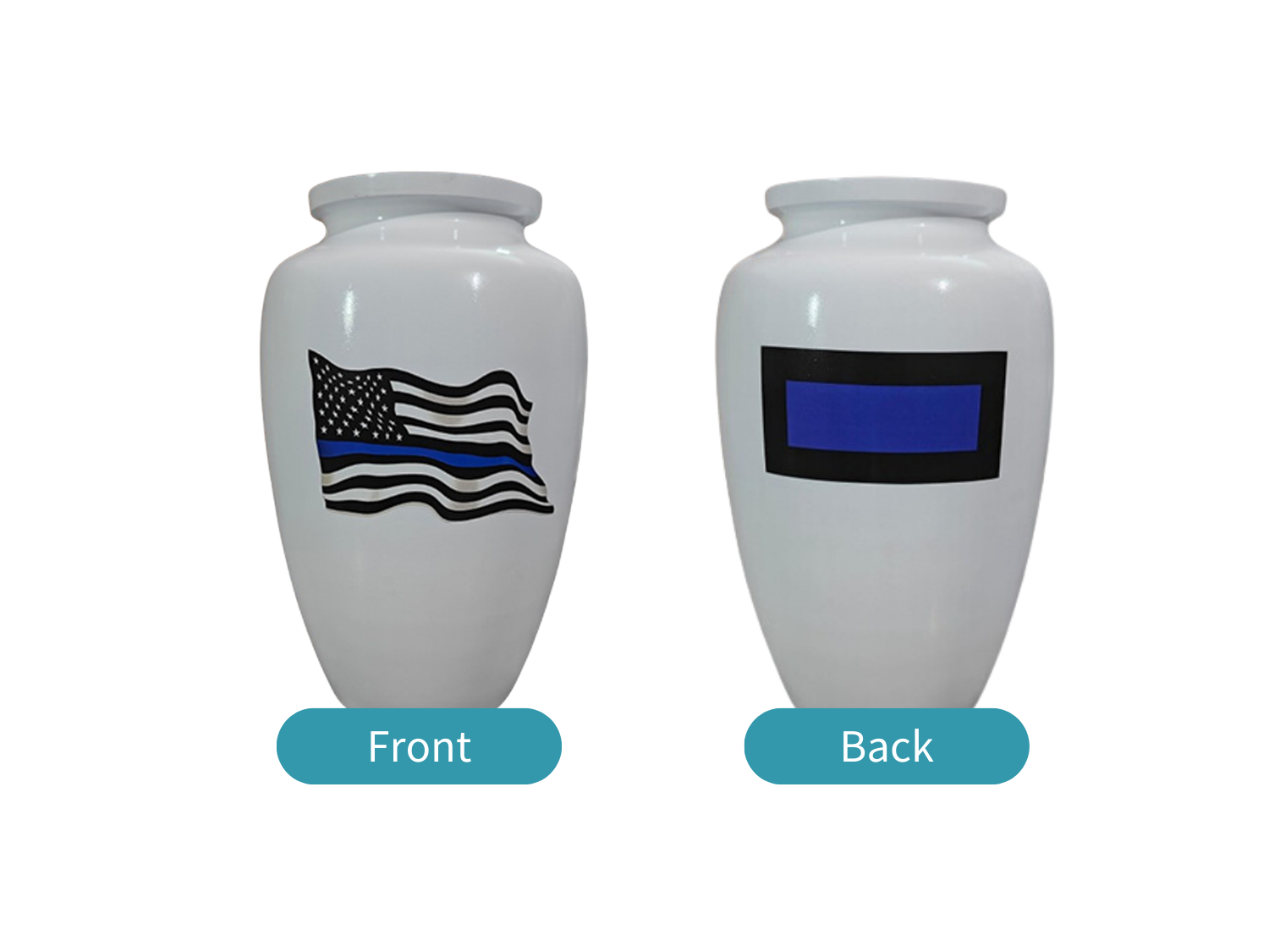 Police Urns: A tribute to law enforcement officers, the Police Urns come in white or black and features the iconic Thin Blue Line flag; making it a fitting memorial for those who protected and served.