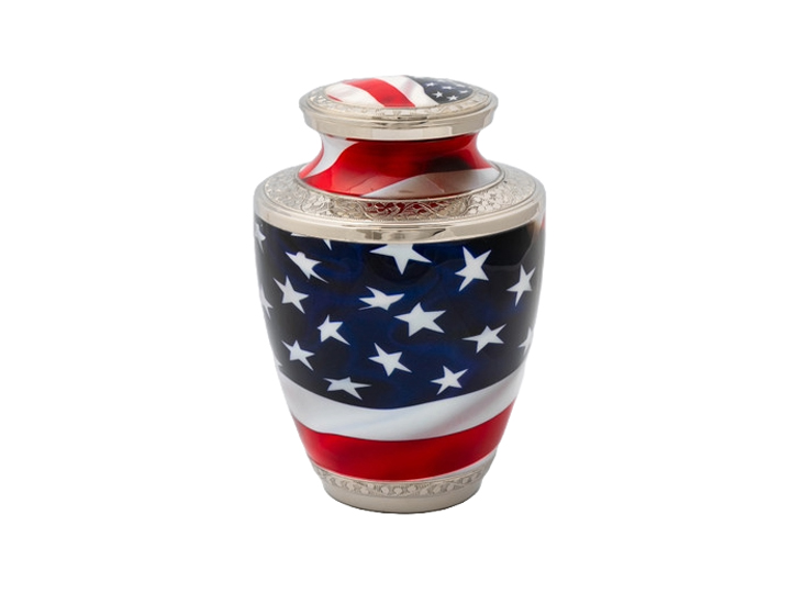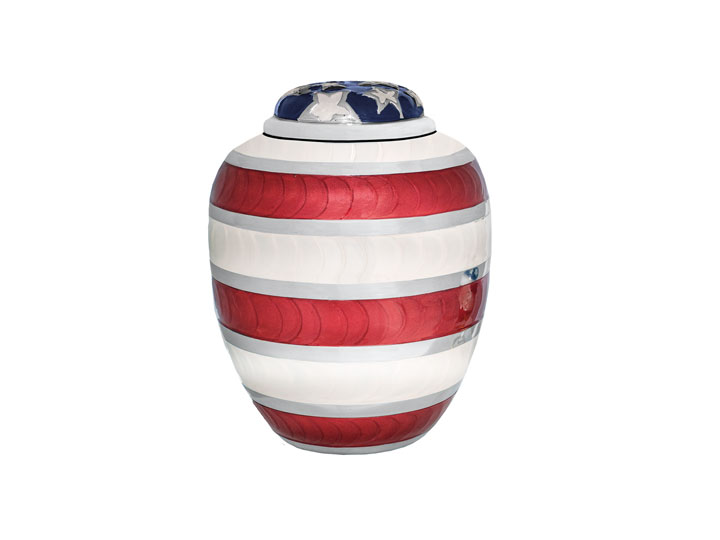 Americana Urn – A dignified resting place that captures the spirit of the American dream, wrapped in the embrace of red, white, and blue. (7.5″ x 9.75″)