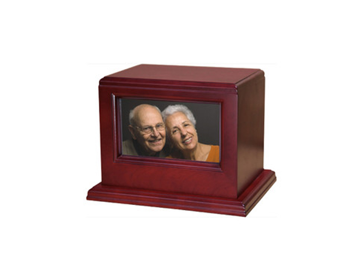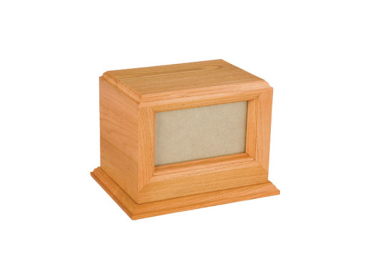 Picture Forest Cherry & Oak Urns – Featuring a built-in photo frame, these urns allow you to showcase cherished memories. Choose from a rich cherry or classic oak finish for a warm and personal tribute. (7.5″ H x 7.75″ W x 10.25″ L)