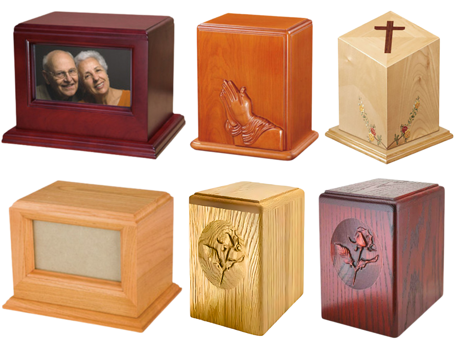 Our Solid Wood Devotional, Rose Oak, & Photo Urns collection offer a dignified and personalized way to honor your loved one.